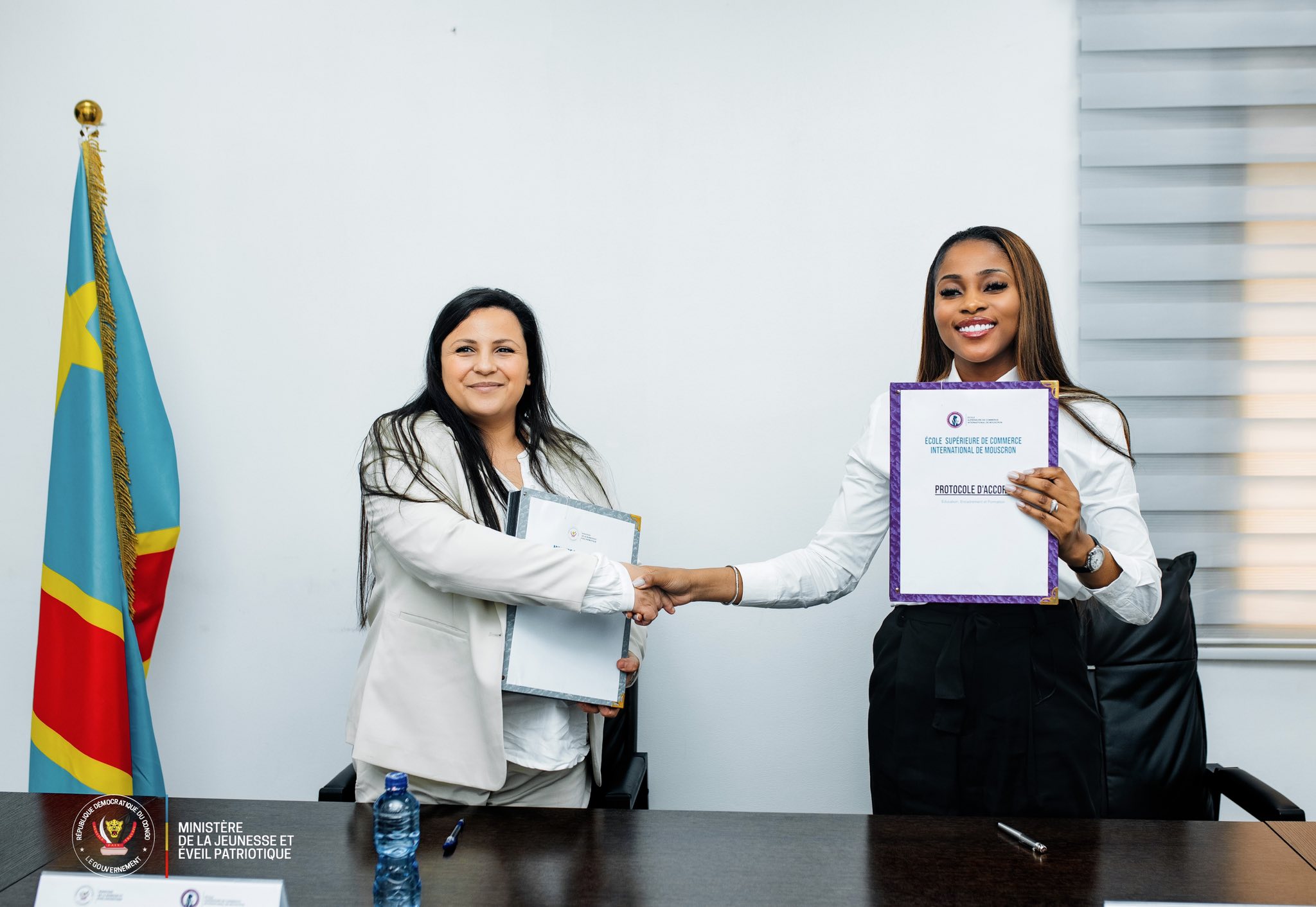 Former pour transformer: un nouveau partenariat pour la jeunesse congolaise Ce mercredi 14 janvier 2026, le Ministère de la Jeunesse et de l’Éveil Patriotique a conclu un protocole d’accord avec l’École Supérieure de Commerce International de Mouscron (ESCIM).